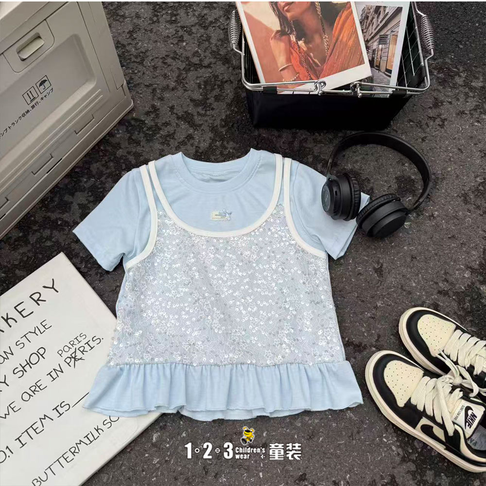 《甜美》【特价】浅蓝 夏款 女中童XK9905 FXDD时尚短T1+2=3童装连锁