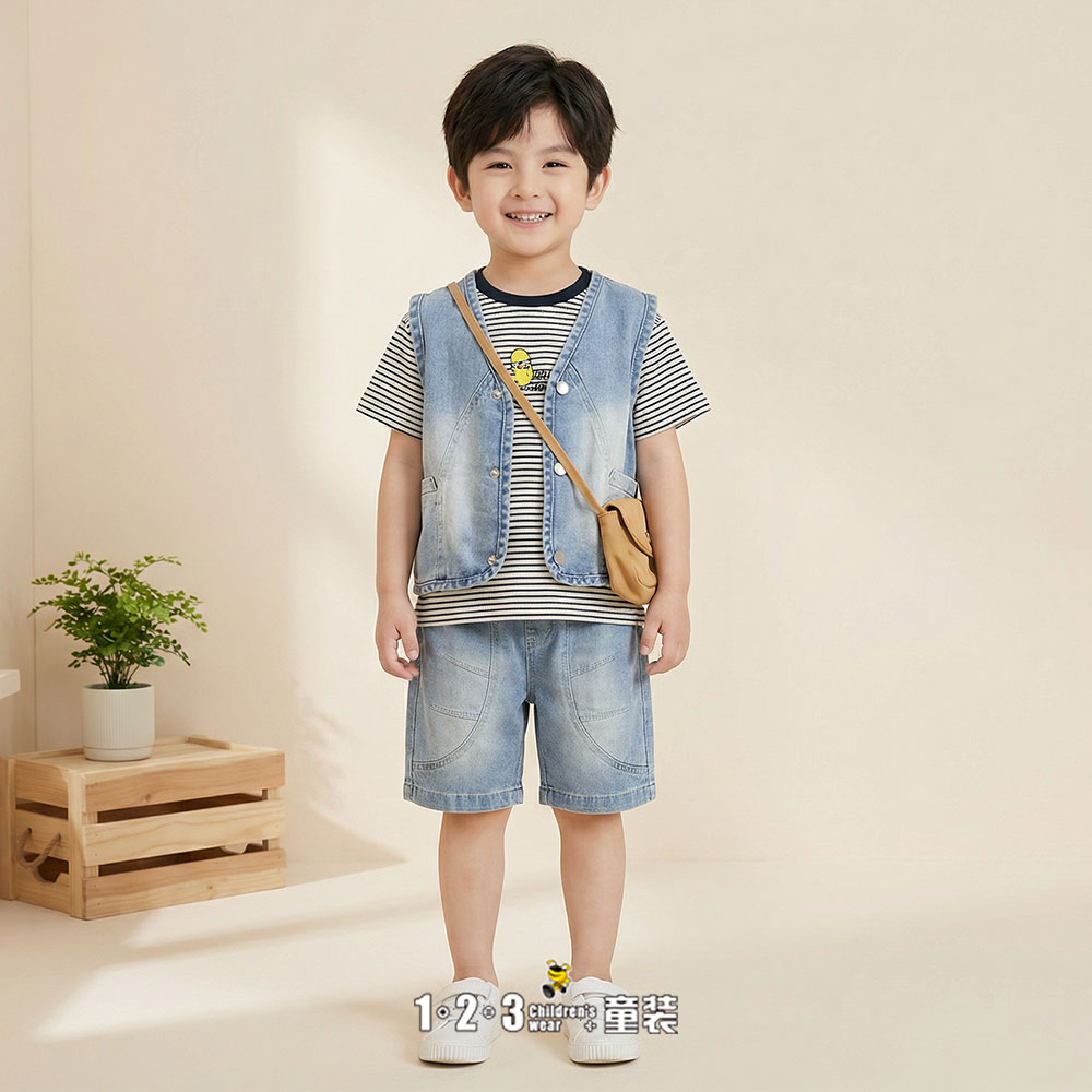 《复古》【特价】蓝 夏款 男小童XK32582 CJDD时尚短袖套装1+2=3童装连锁