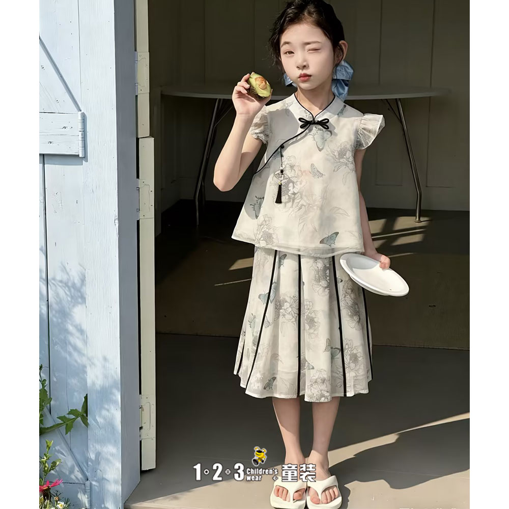 《复古》绿 夏款 女中童XKR2681 RYDD时尚短袖套装1+2=3童装连锁