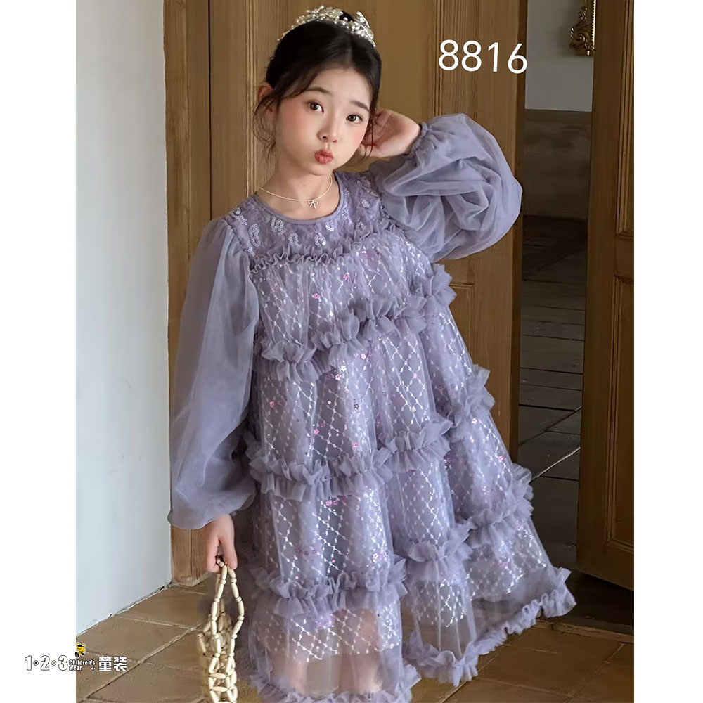 紫 春款 女中童8816 MSDD时尚长袖连衣裙123童装连锁