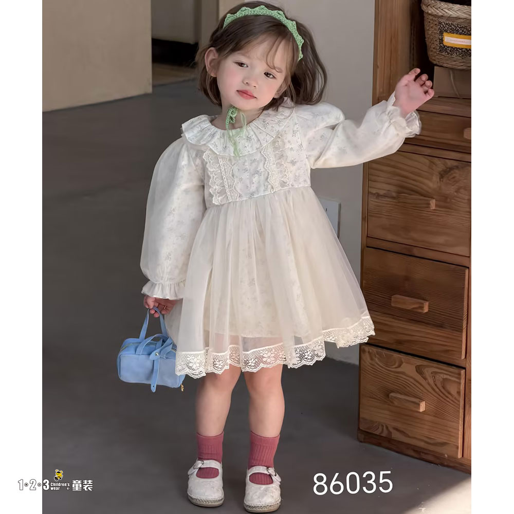 蓝 春款 女小童86035 BNDD时尚长袖连衣裙123童装连锁