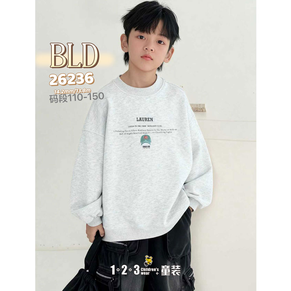 【特价】烟灰 春款 男中童26236 BLDD时尚薄套头衫123童装连锁