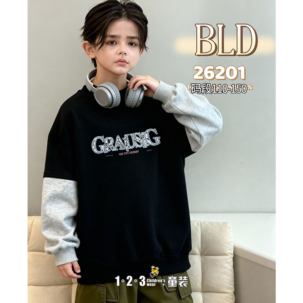 【特价】黑 春款 男中童26201 BLDD时尚薄套头衫123童装连锁
