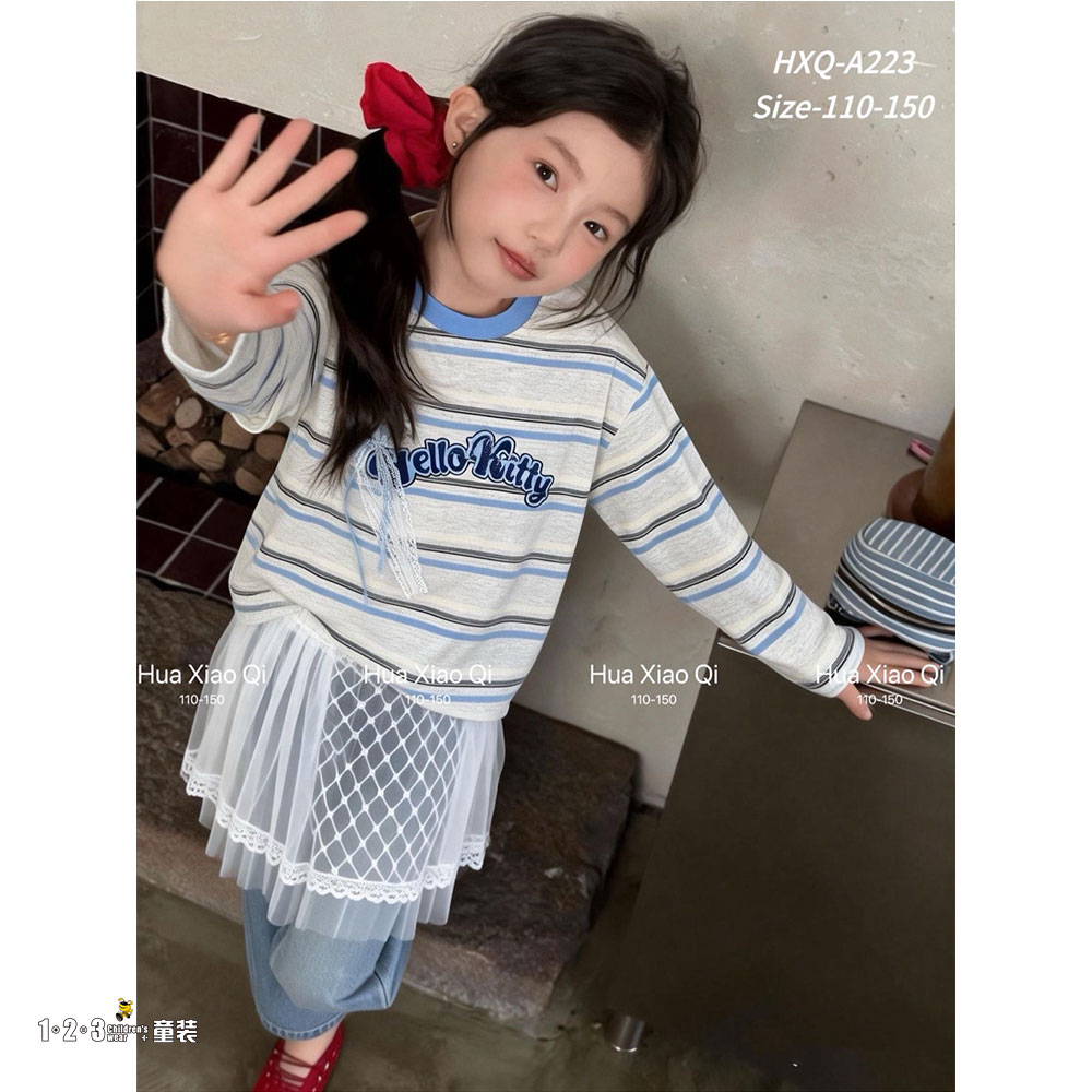 【特价】浅蓝 春款 女中童223 FXDD时尚薄打底衫123童装连锁
