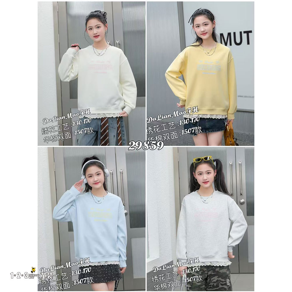 【特价】浅蓝 春款 女大童1507 FXDD时尚薄套头衫123童装连锁