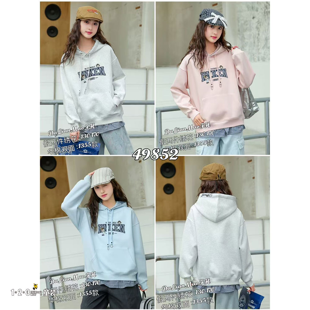 【特价】烟灰 春款 女大童1355 FXDD时尚薄套头衫123童装连锁