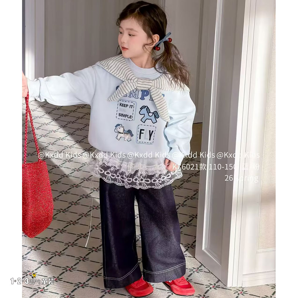 蓝 春款 女中童6021 HLDD时尚长袖套装123童装连锁