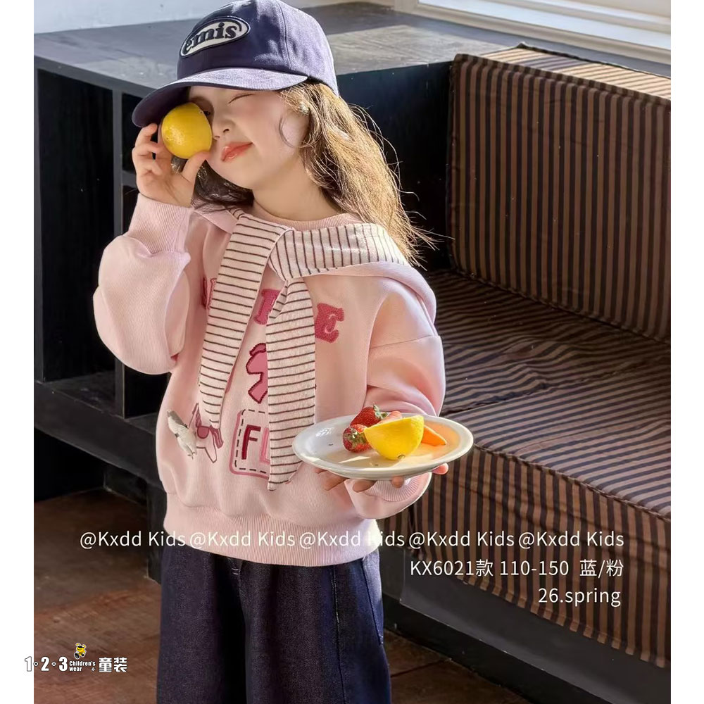 粉 春款 女中童6021 HLDD时尚长袖套装123童装连锁