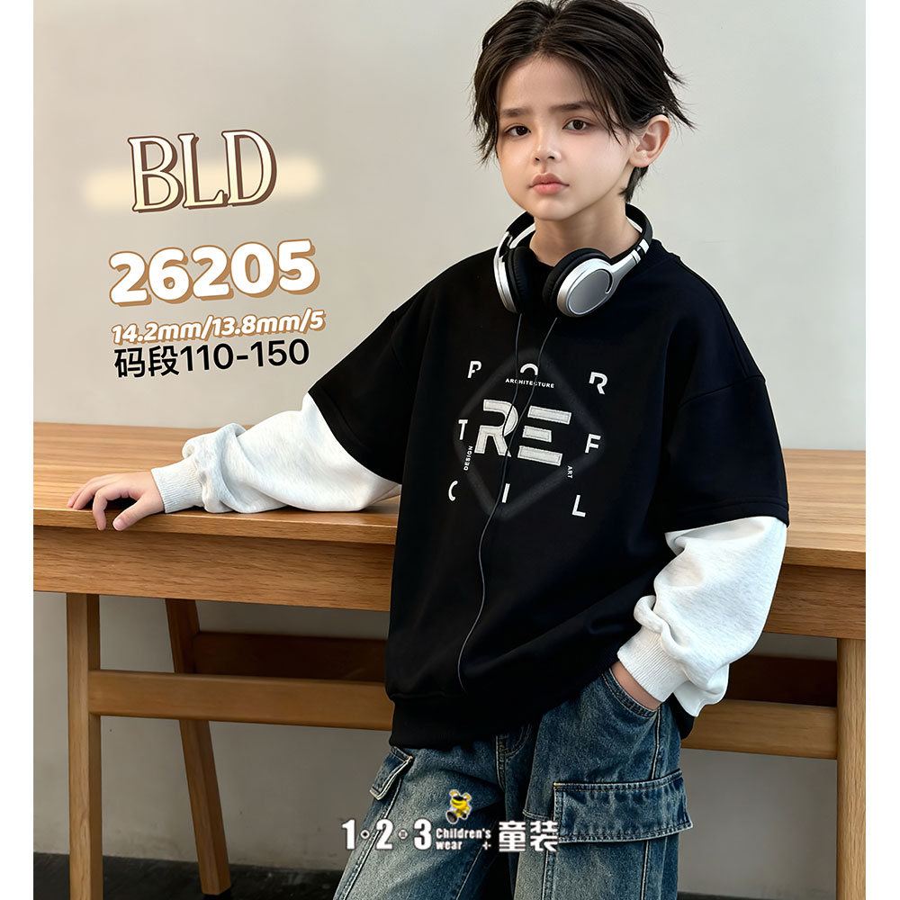 【特价】黑 春款 男中童26205 BLDD时尚薄套头衫123童装连锁