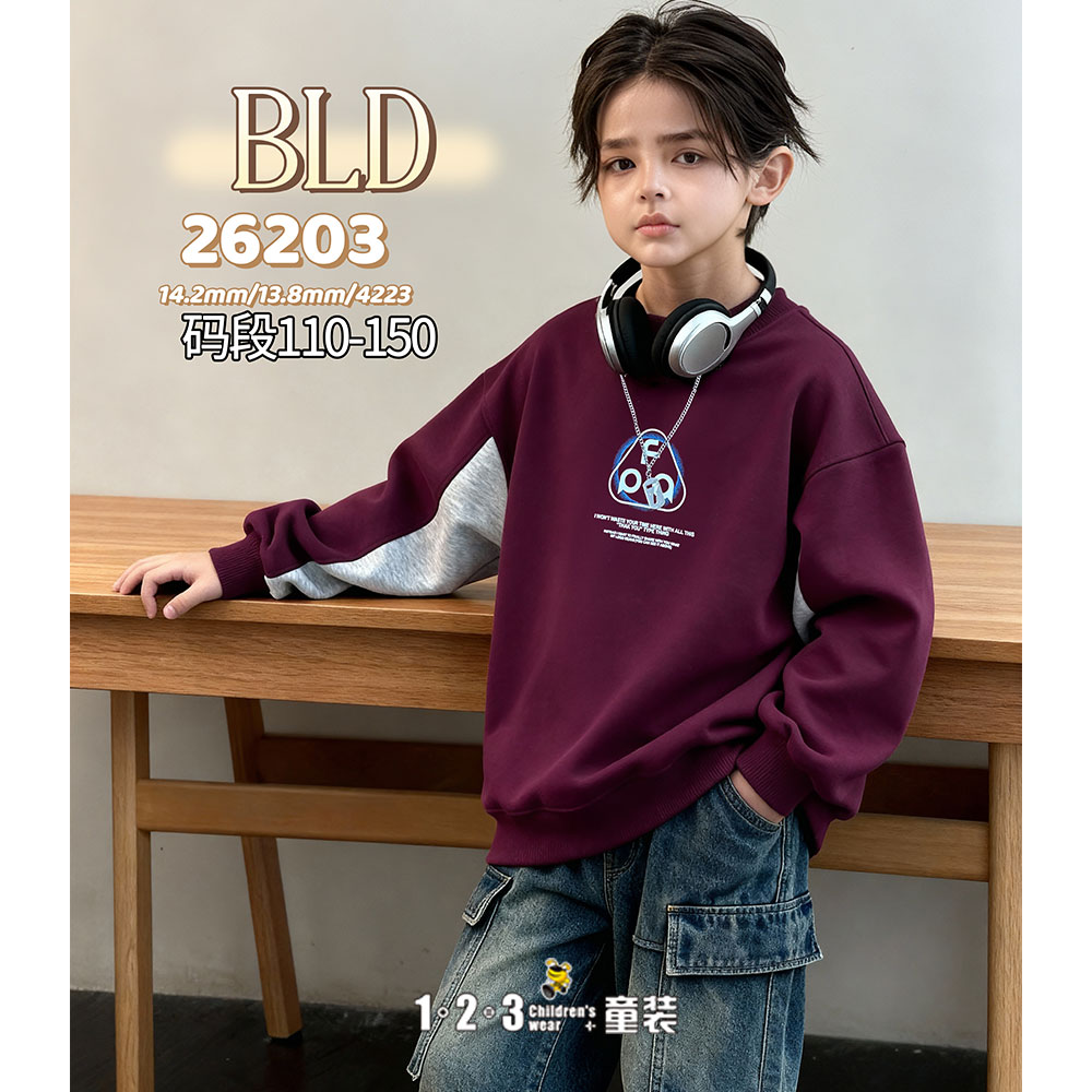 【特价】紫 春款 男中童26203 BLDD时尚薄套头衫123童装连锁