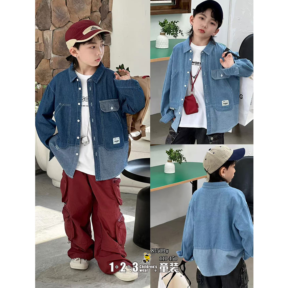 深蓝 春款 男中童87509 MYDD时尚长袖衬衫123童装连锁