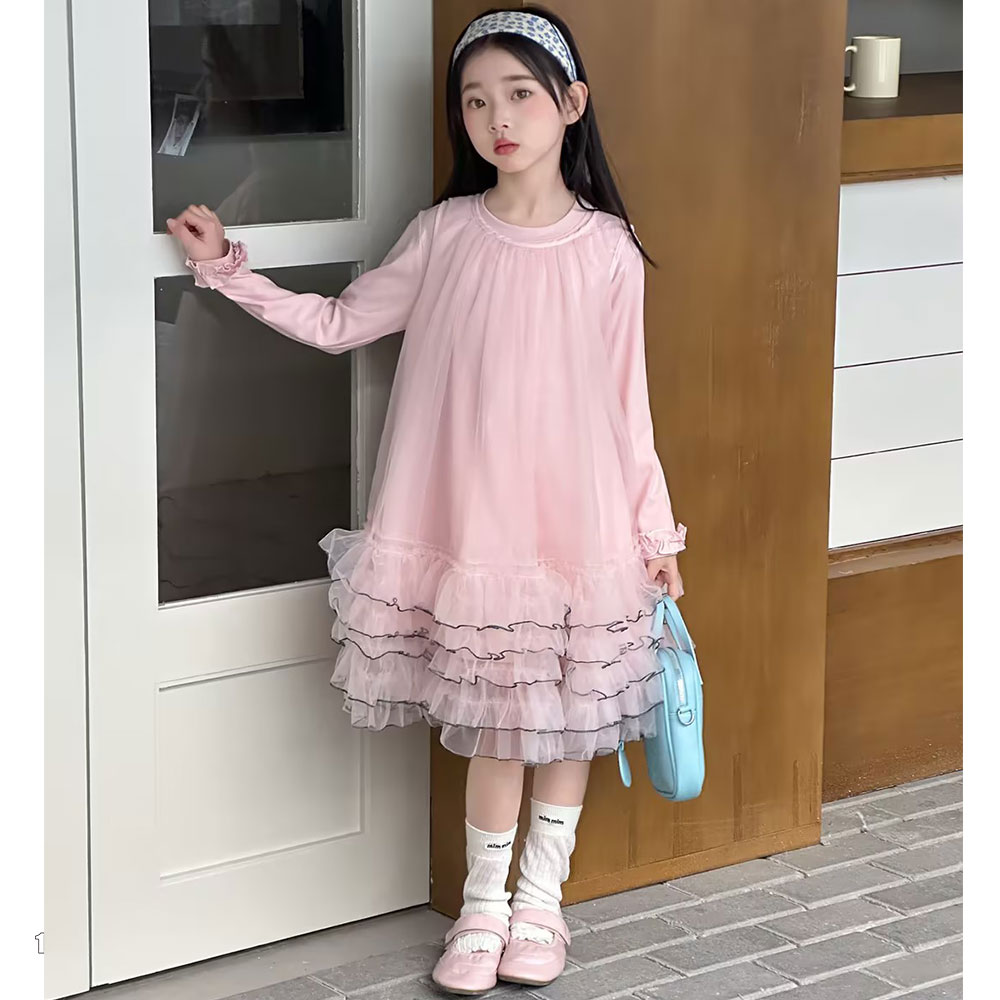 粉 春款 女中童9901 MSDD时尚长袖连衣裙123童装连锁