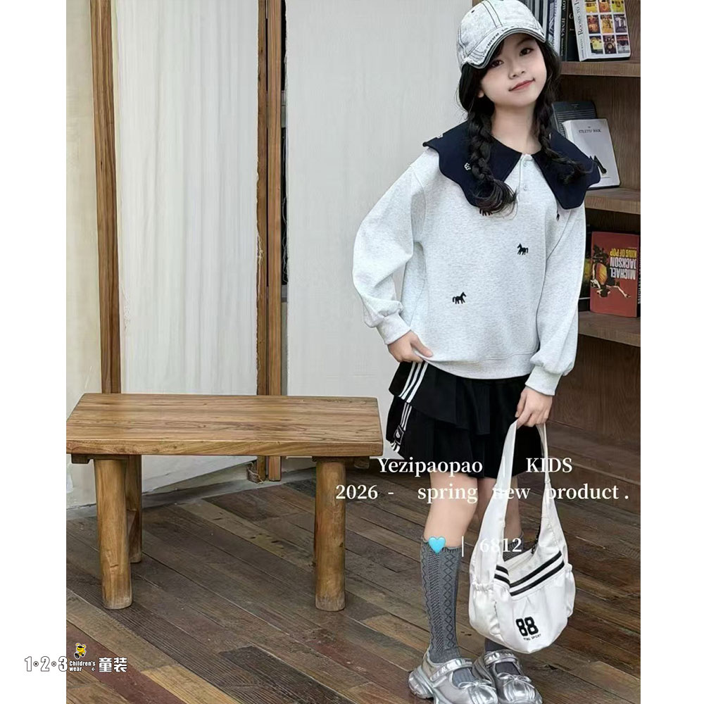 【特价】烟灰 春款 女大童6812 FXDD时尚薄套头衫123童装连锁