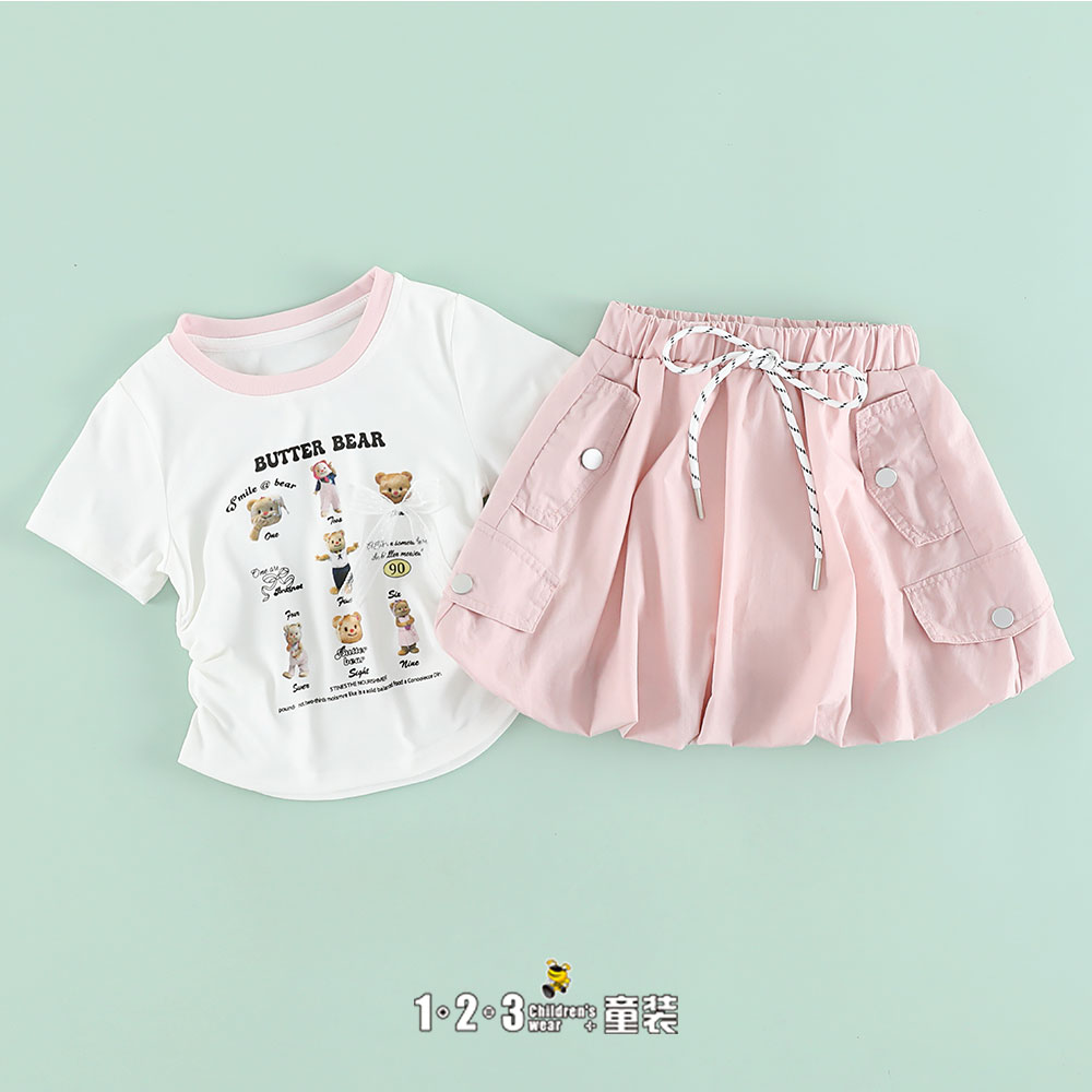 粉 夏款 女小童6F20313 DDDD时尚短袖套装1+2=3童装连锁