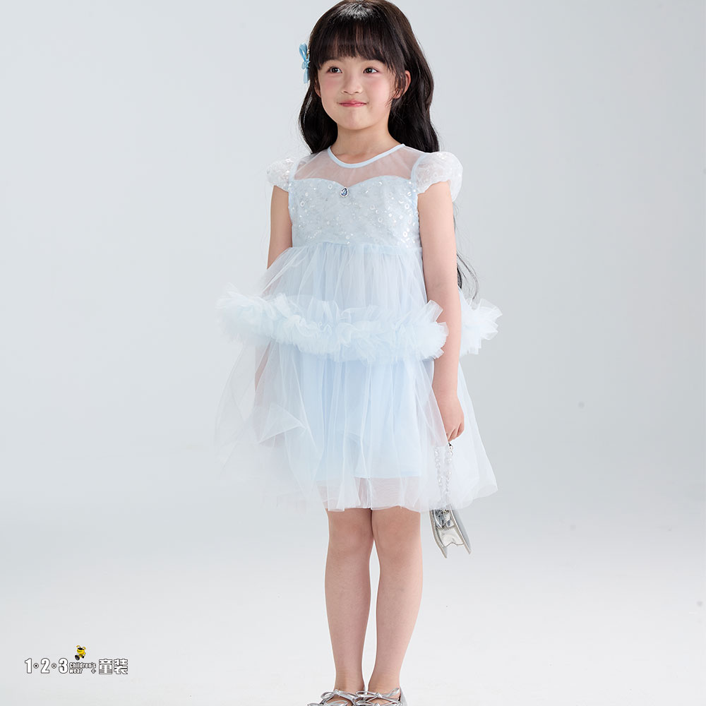(多多同款)蓝 夏款 女小童6F20802 DDDD时尚短袖连衣裙1+2=3童装连锁