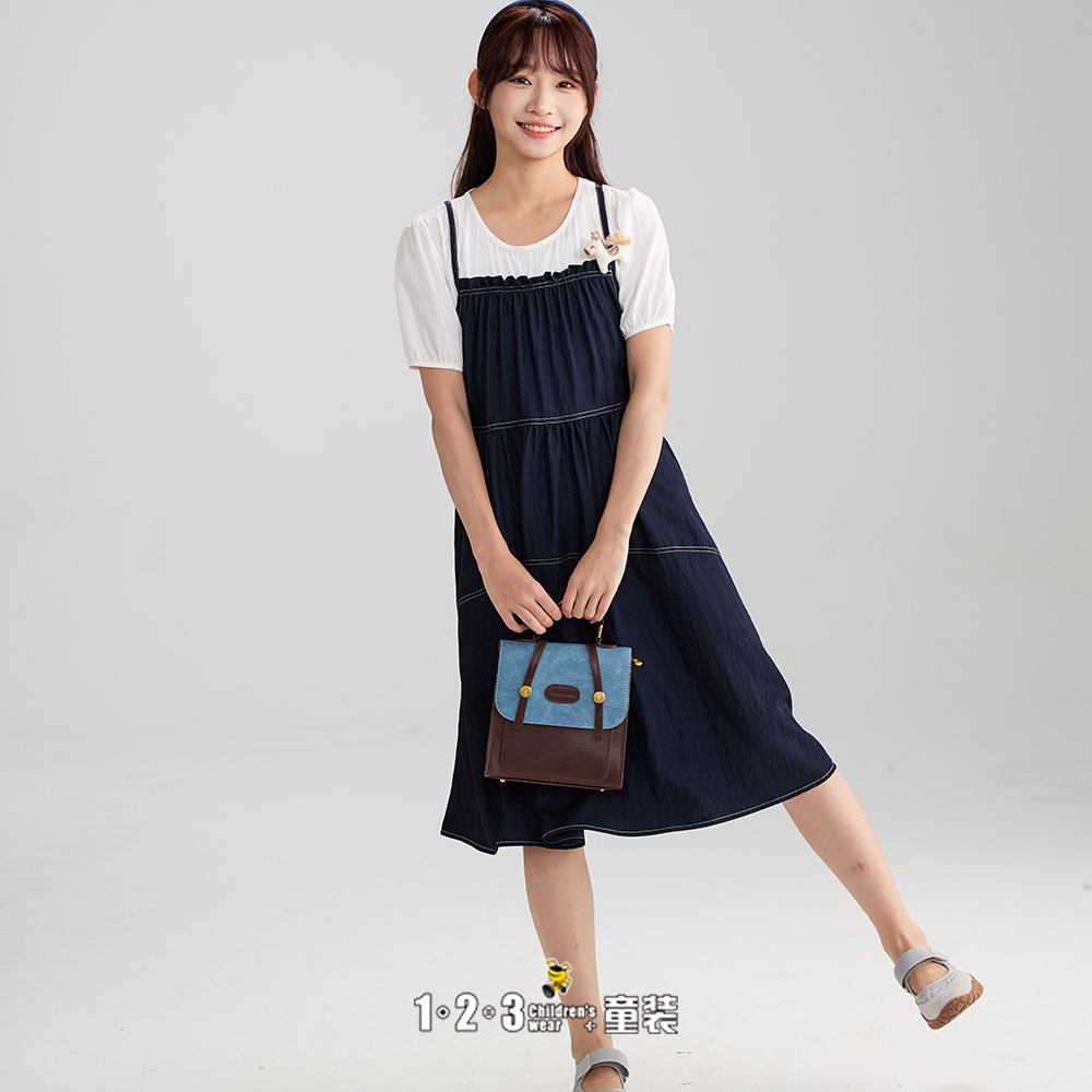 原色牛仔 夏款 女大童6F20315 PCDD时尚短袖连衣裙1+2=3童装连锁