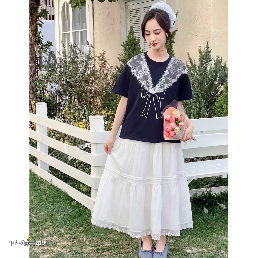 蓝 夏款 女大童033 YGDD时尚短袖套装123童装连锁