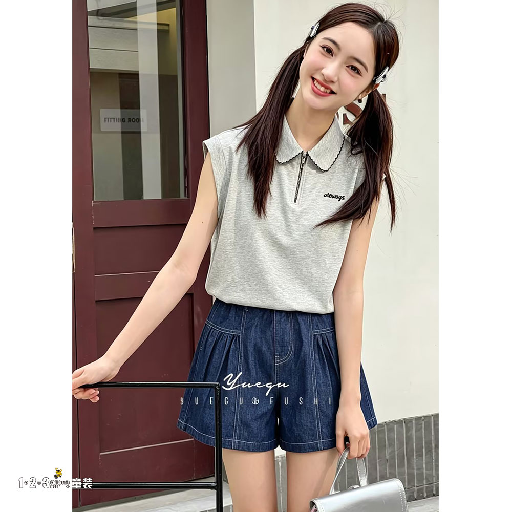 灰 夏款 女大童017 YGDD时尚短袖套装123童装连锁