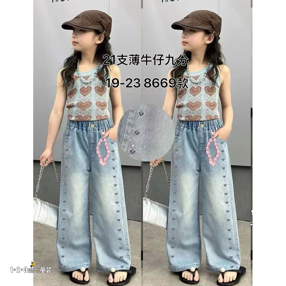 【特价】浅蓝 夏款 19-23女中童8669 SSDD时尚牛仔中裤123童装连锁