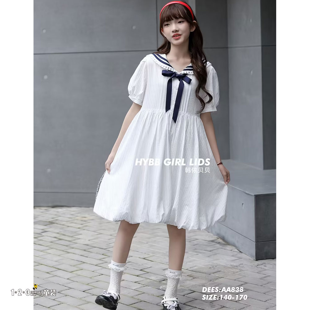 白 夏款 女大童838 HYDD时尚短袖连衣裙123童装连锁