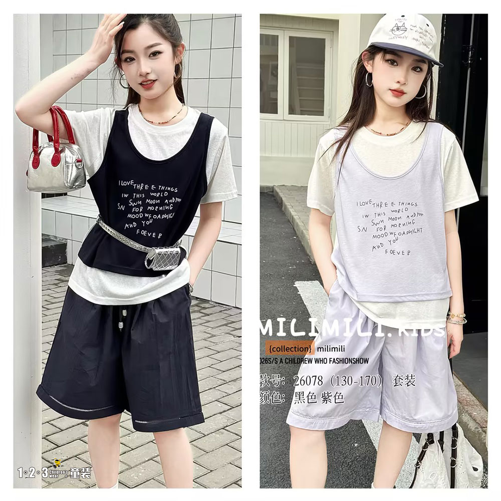 藏青 夏款 女大童26078 MLDD时尚短袖套装123童装连锁