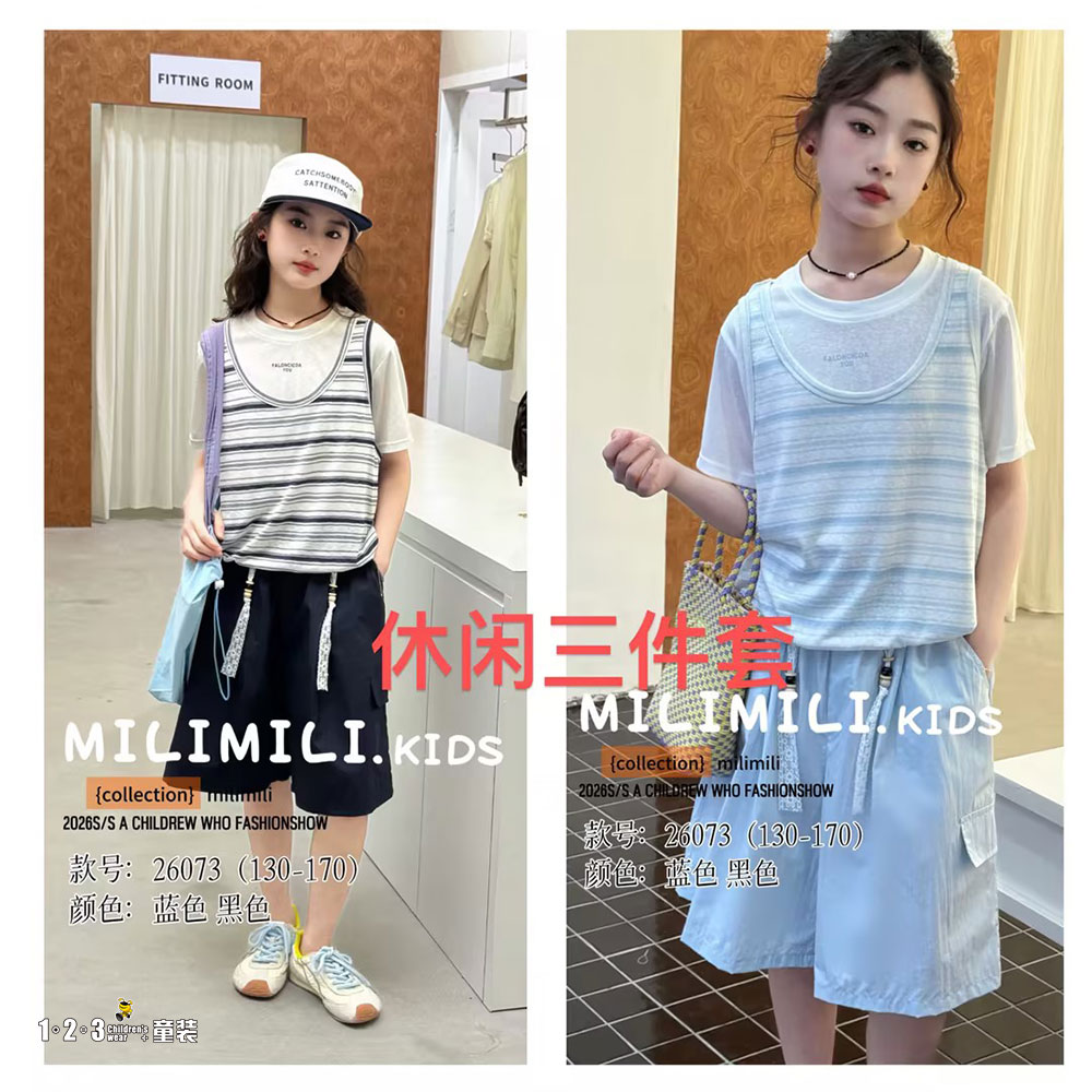 藏青 夏款 女大童73 MLDD时尚短袖套装123童装连锁
