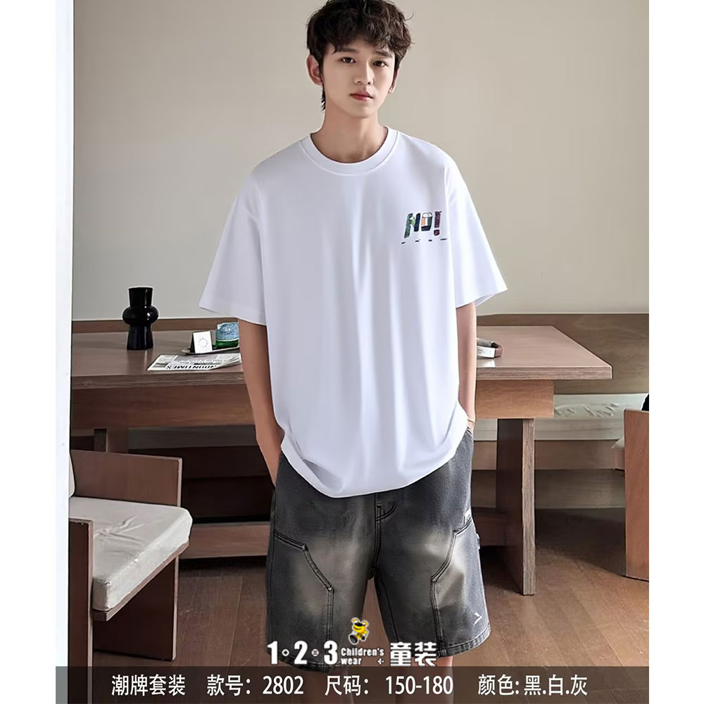 白 夏款 男大童2802 DKDD时尚短袖套装123童装连锁