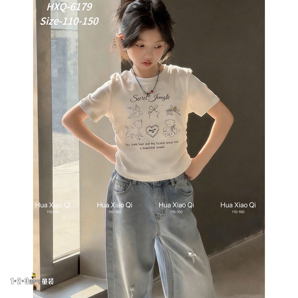 【特价】白 夏款 女中童6179 MMDD时尚短T123童装连锁