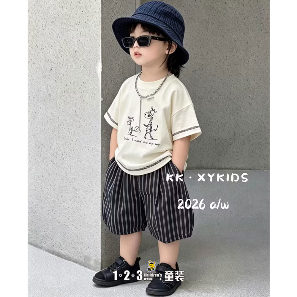 米黄 夏款 男小童02-17 KKDD时尚短袖套装123童装连锁