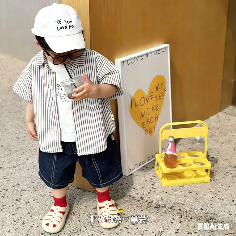 咖啡 夏款 男小童110 MMDD时尚短袖衬衫123童装连锁