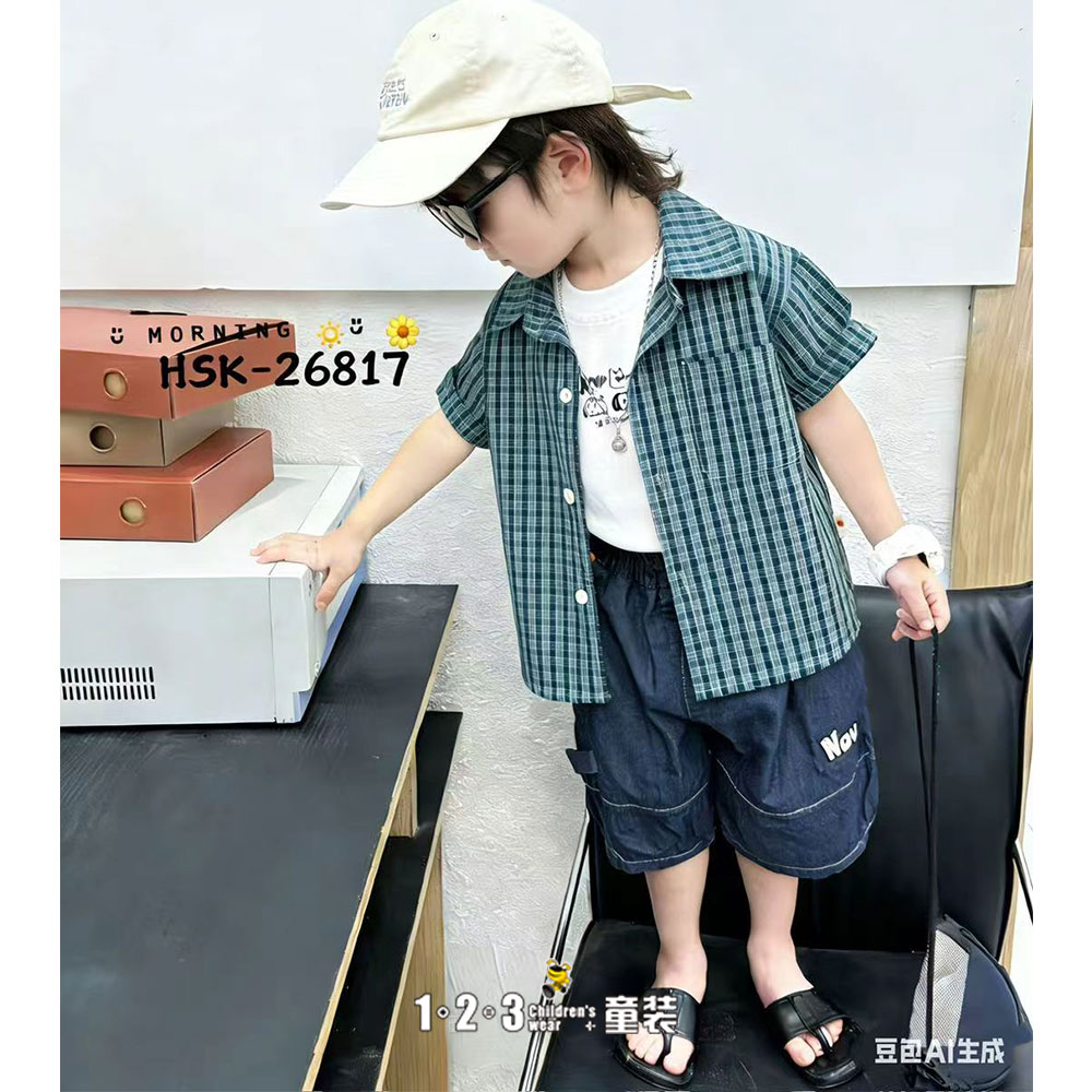 浅蓝 夏款 男小童108 MMDD时尚短袖衬衫123童装连锁