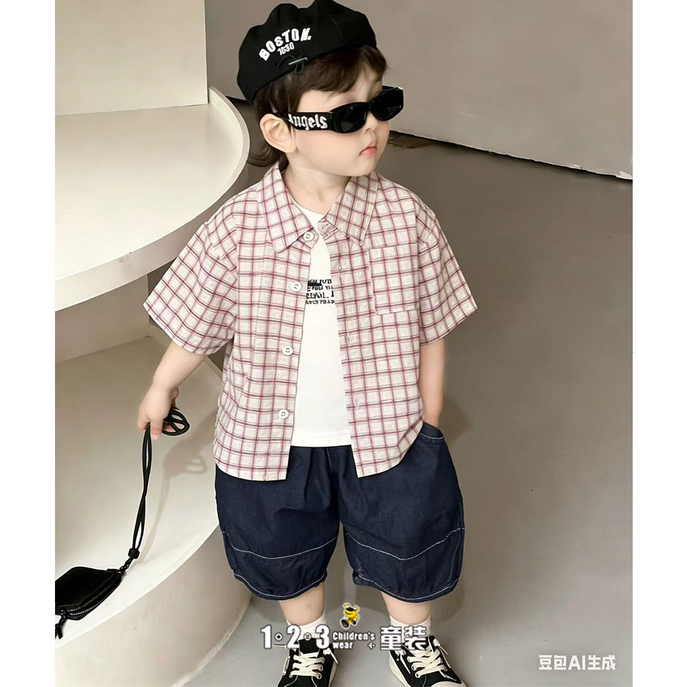 红 夏款 男小童104 MMDD时尚短袖衬衫123童装连锁