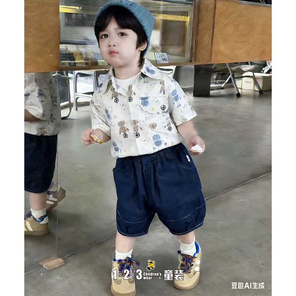 白 夏款 男小童120 MMDD时尚短袖衬衫123童装连锁