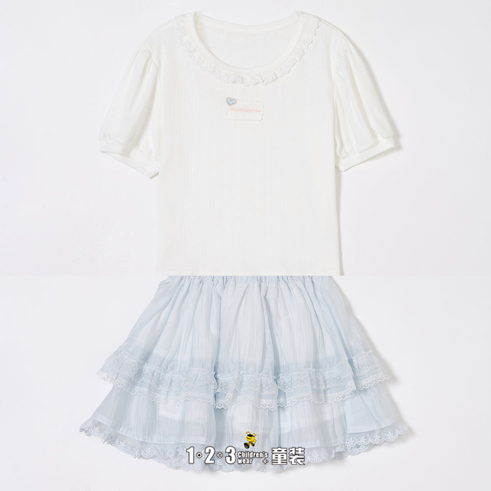 【五一限价51.9元】米白 夏款 女小童6F20373 FXDD时尚短袖套装1+2=3童装连锁