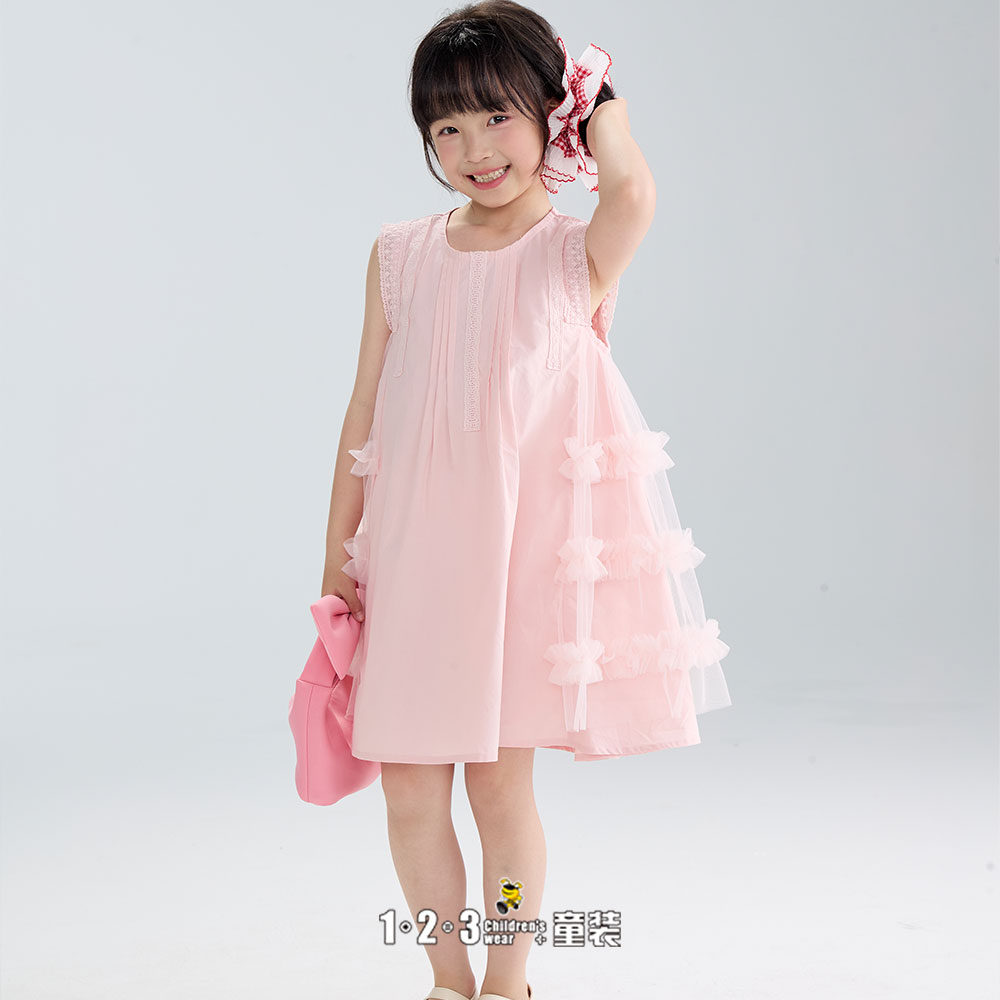 【五一限价42.9元】粉 夏款 女小童6F20339 FXDD时尚短袖连衣裙1+2=3童装连锁
