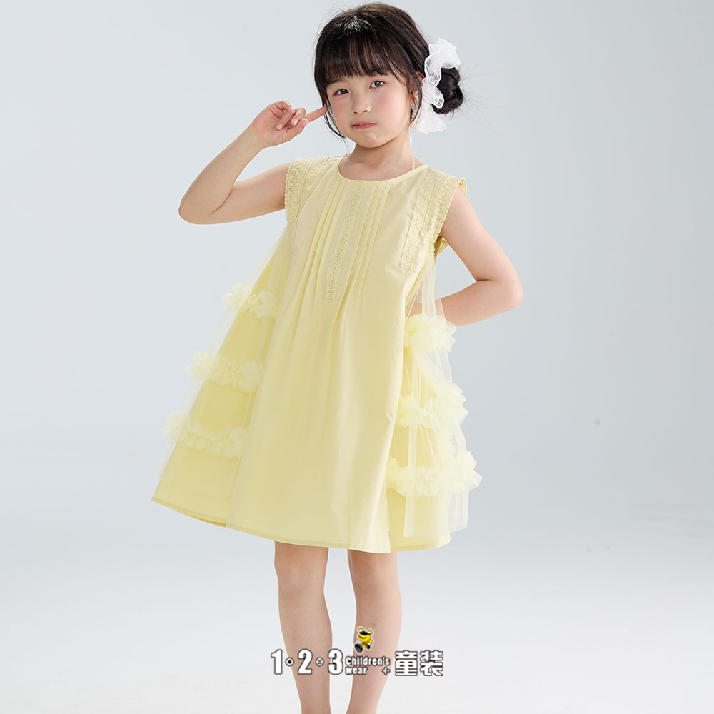 【五一限价42.9元】黄 夏款 女小童6F20339 FXDD时尚短袖连衣裙1+2=3童装连锁