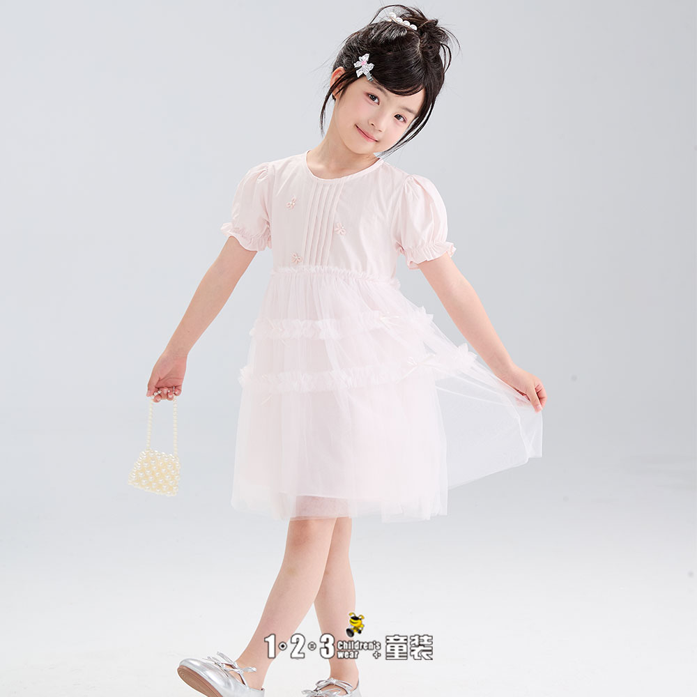 【五一限价40.9元】粉 夏款 女小童6F20330 FXDD时尚短袖连衣裙1+2=3童装连锁