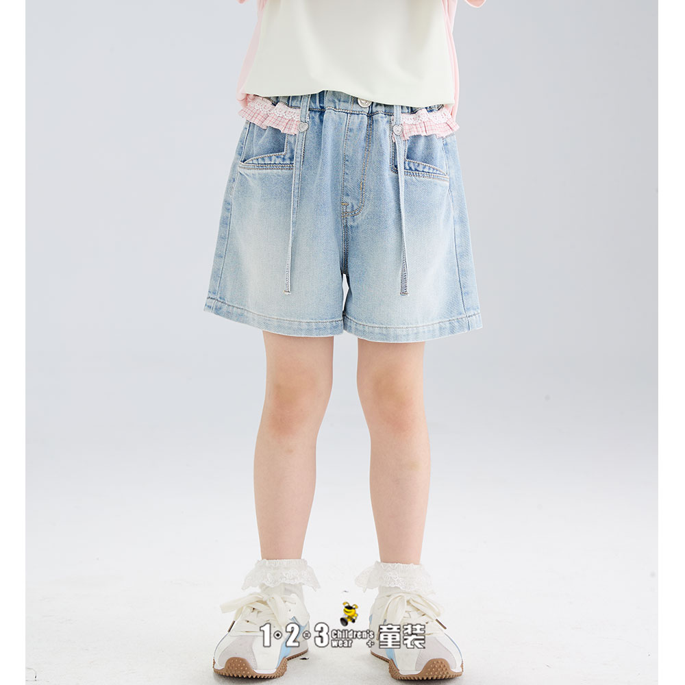 【五一限价35.9元】【特价】粉 夏款 90-140女小童6F20452 FXDD时尚牛仔短裤1+2=3童装连锁