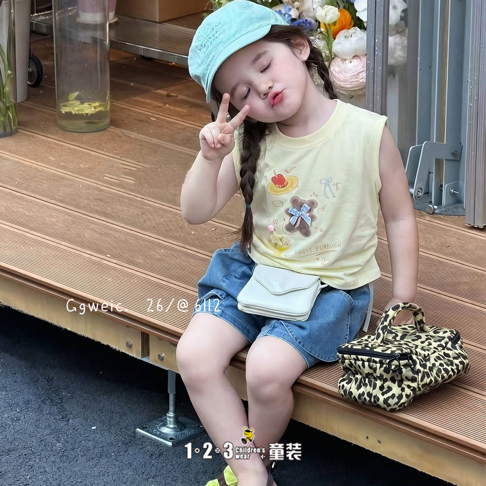 【五一限价20.9元】【特价】黄 夏款 女小童6112 GGDD时尚背心1+2=3童装连锁