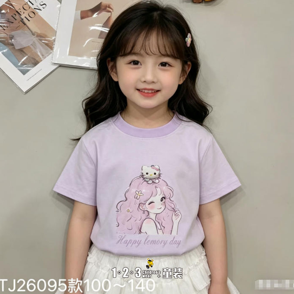 【五一限价23.9元】【特价】紫 夏款 女小童26095 FXDD时尚短T1+2=3童装连锁
