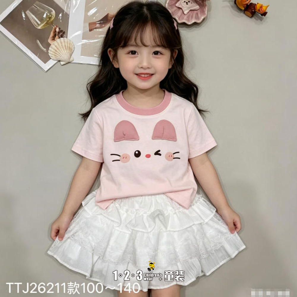 【五一限价23.9元】【特价】粉 夏款 女小童26211 FXDD时尚短T1+2=3童装连锁