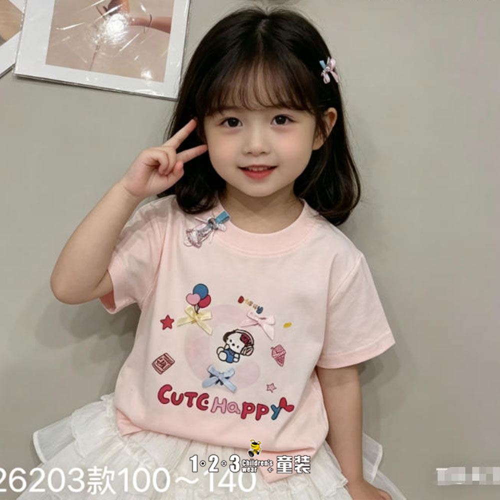 【五一限价24.9元】【特价】粉 夏款 女小童26203 FXDD时尚短T1+2=3童装连锁