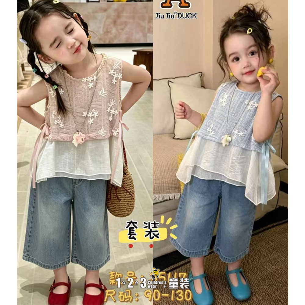 【五一限价68.9元】粉 夏款 女小童G35117 CJDD时尚背心套装1+2=3童装连锁