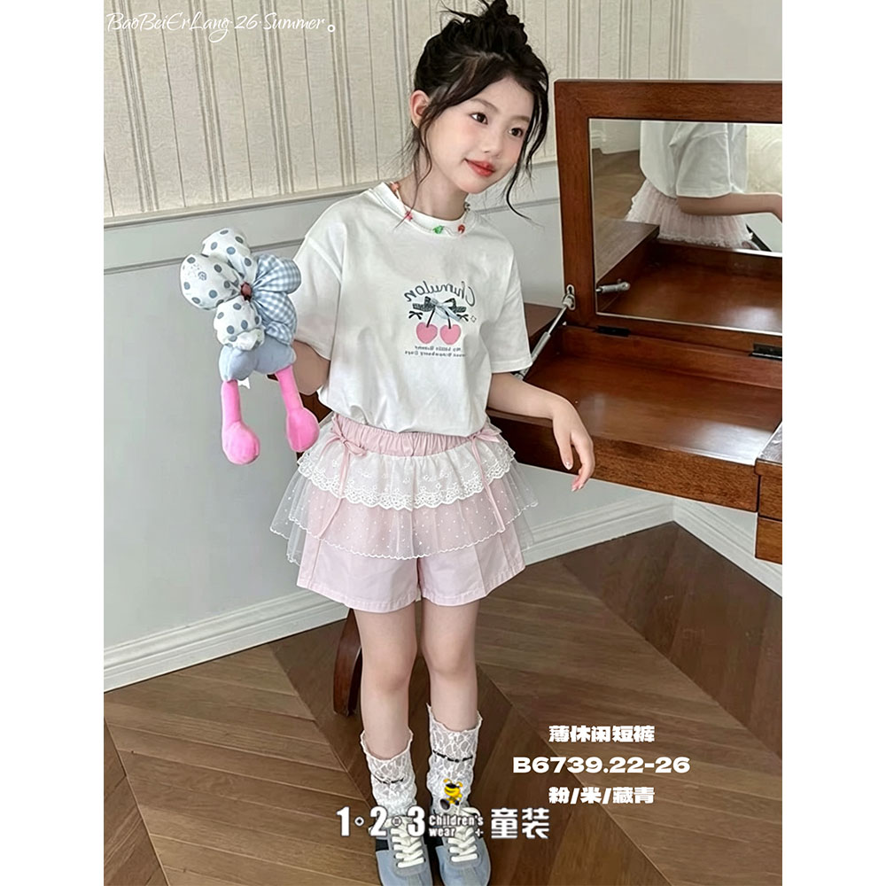 【五一限价31.9元】【特价】粉 夏款 22-26女中童6739 BBDD时尚休闲短裤1+2=3童装连锁