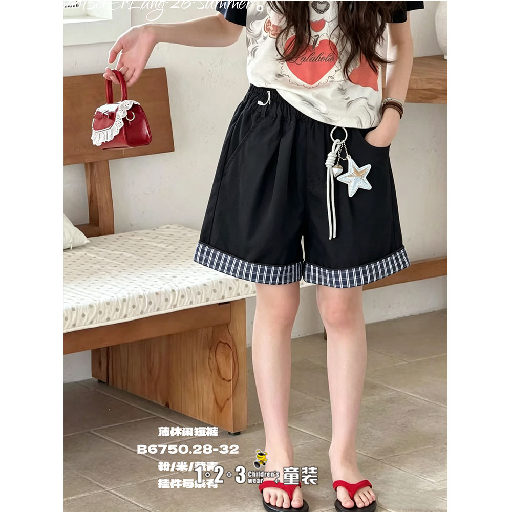 【五一限价32.9元】【特价】藏青 夏款 28-32女大童6750 BBDD时尚休闲短裤1+2=3童装连锁