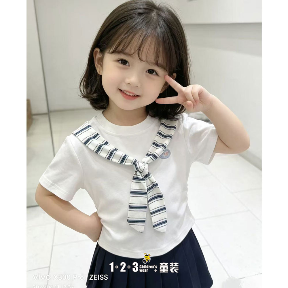 【五一限价22.9元】【特价】白 夏款 女中童26055 MMDD时尚短T1+2=3童装连锁