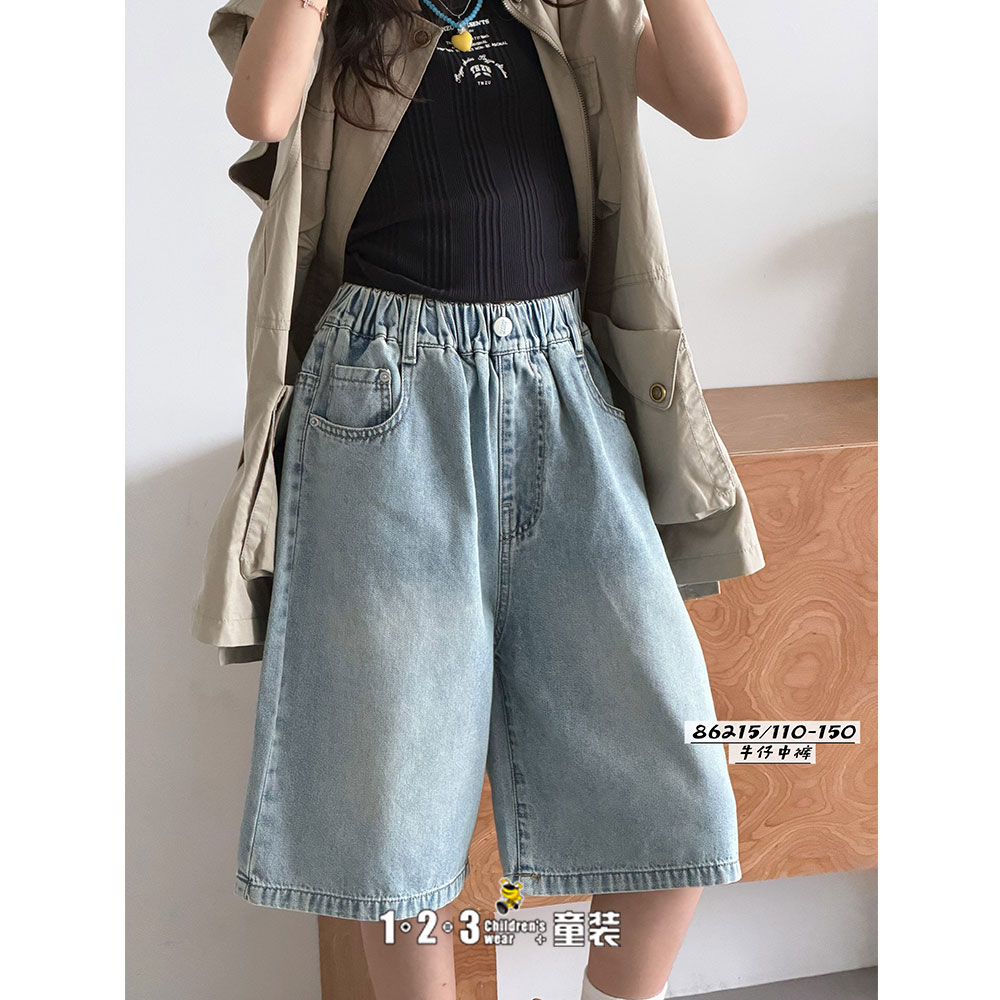 【五一限价42.9元】【特价】浅蓝 夏款 110-150男中童86215 QHDD时尚牛仔短裤1+2=3童装连锁