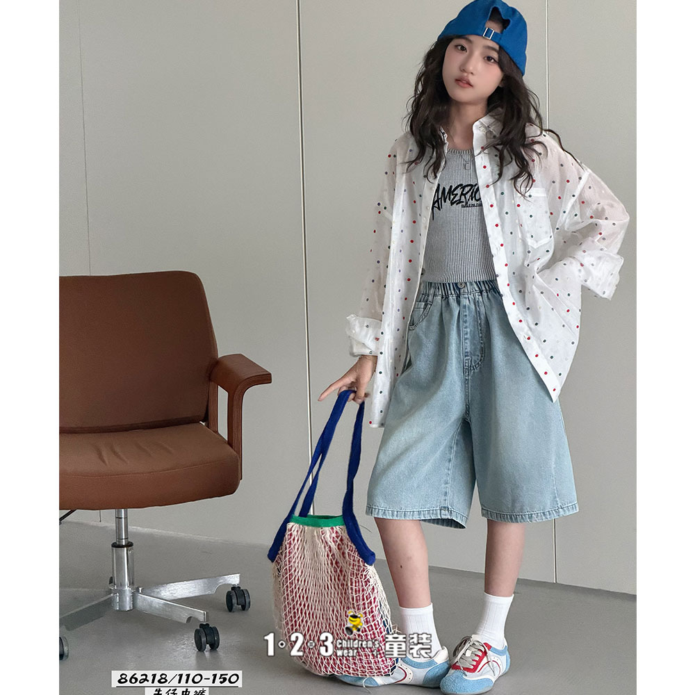 【五一限价42.9元】【特价】浅蓝 夏款 110-150男中童86218 QHDD时尚牛仔短裤1+2=3童装连锁