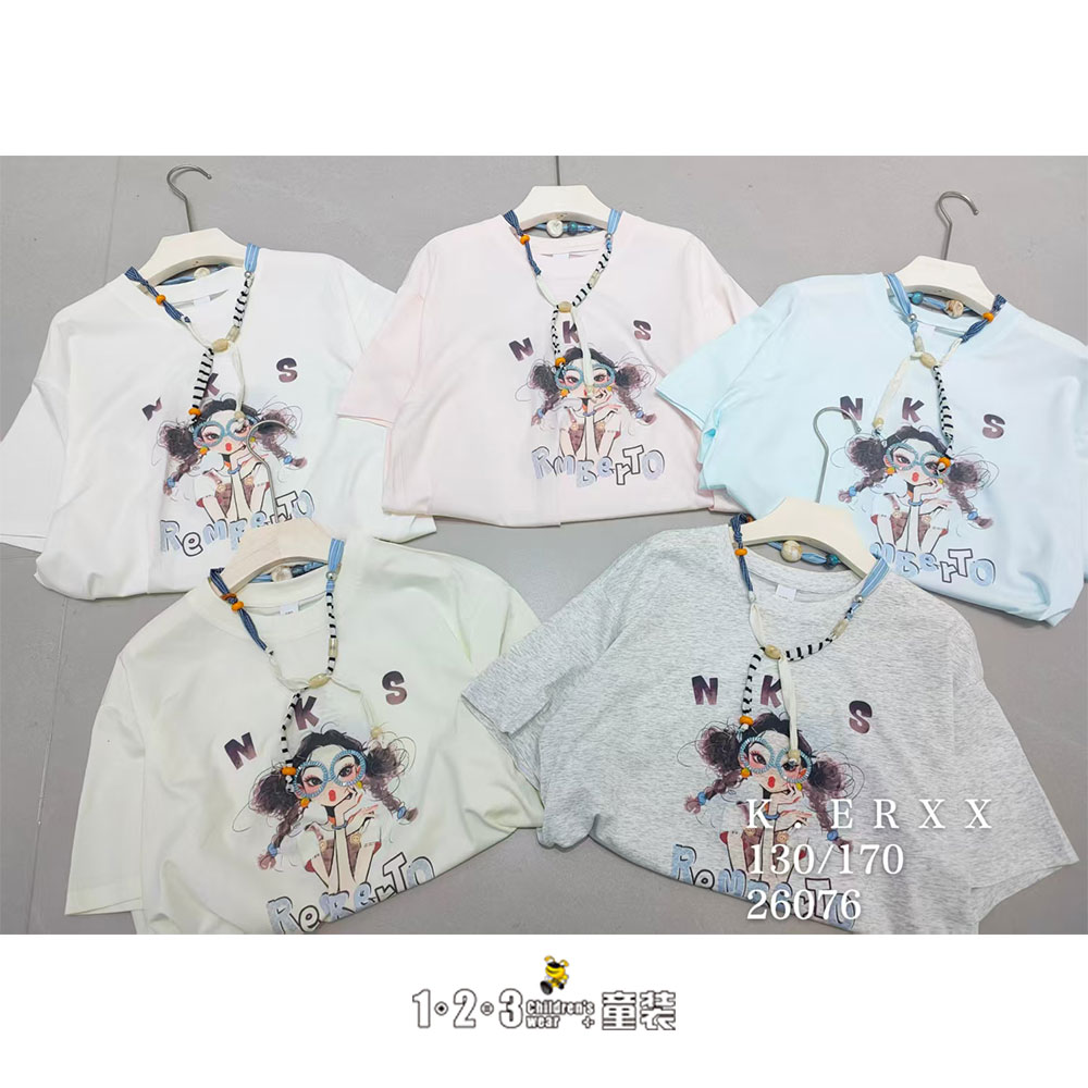 【五一限价40.9元】【特价】浅蓝 夏款 女大童26076 KRDD时尚短T1+2=3童装连锁