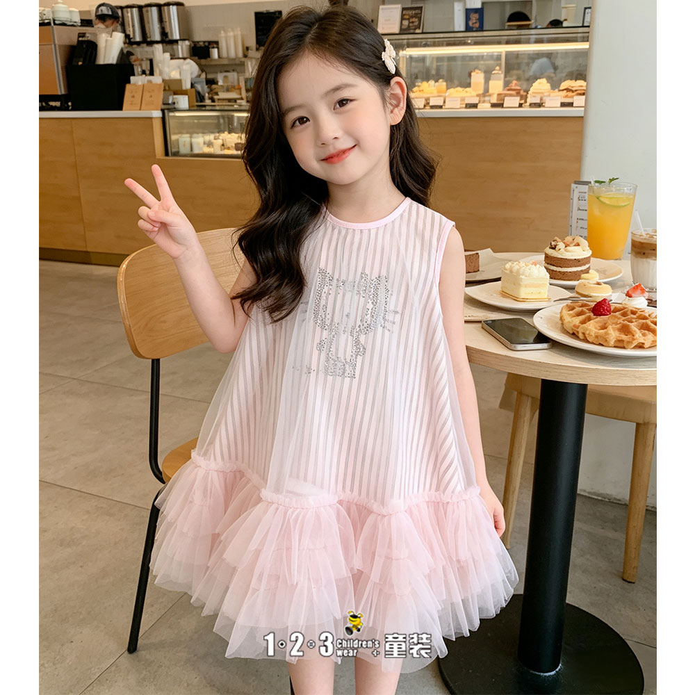 【五一限价38.9元】粉 夏款 女小童8871 MSDD时尚无袖连衣裙1+2=3童装连锁